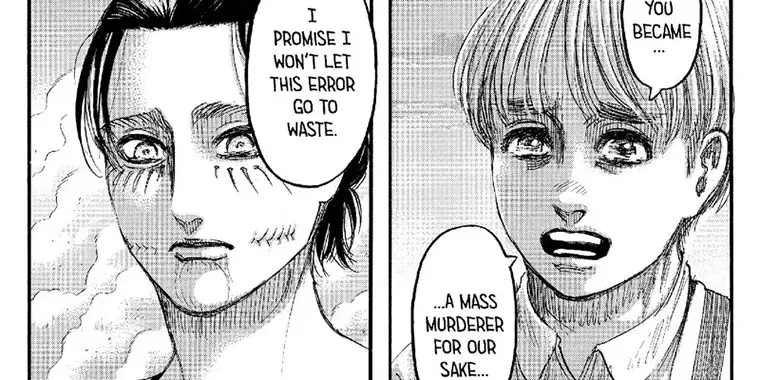 در مانگا: شخصیت ارن در فصل آخر کمی گنگ بود و انگیزه او کاملاً شفاف نبود.