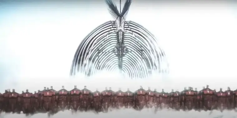 انیمه نشان داد که صلح ایجاد شده توسط دوستان ارن هزاران سال (یا قرنها) دوام آورد و پارادایس به یک شهر فوقمدرن تبدیل شد. اما در نهایت جنگ دوباره بازگشت. سکانس پایانی انیمه پسر و سگش را نشان میدهد که وارد درخت میشوند، که تاییدی قطعی بر این است که چرخه تایتانها دوباره تکرار خواهد شد و تاریخ مدام تکرار میشود.