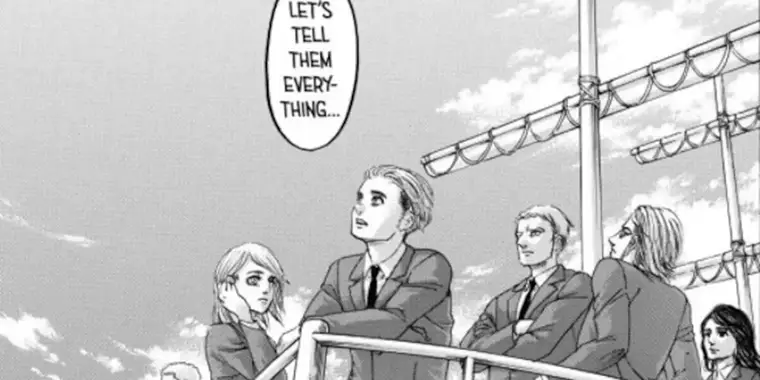 در مانگا: اشاره میشود که هیستوریا (Historia) از گروه محافظت میکند و امنیت آنها تضمین شده است.